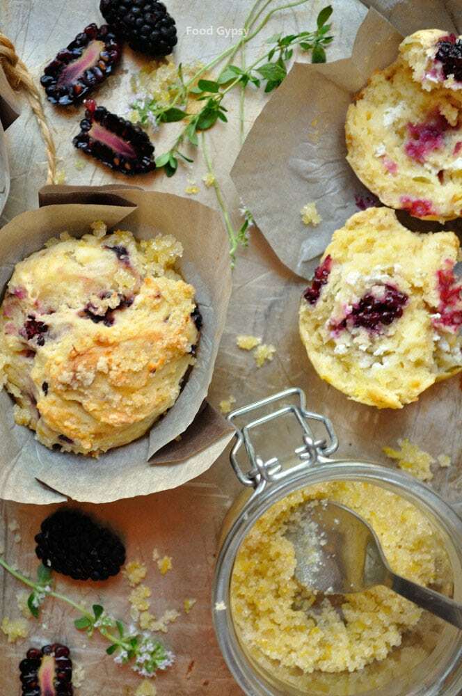 Blackberry Goat Cheese Muffins with Lemon Sugar & Thyme