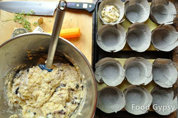 Gypsy Muffin Tip: When using fresh or frozen berries in muffins, separate a couple tablespoons of the dry ingredients when mixed and, in a separate bowl, toss your fruit with the dry mix to coat it well. This will keep your fruit from bleeding when incorporated into the wet batter and maintain the juices in tight, colourful packages of punctuated flavour. Use this technique with blueberries, raspberries, strawberries, lingonberries, currents, Saskatoon berries, blackberries and frozen cranberries (fresh cranberries are pretty tough little suckers and don’t bleed much). Bake well!