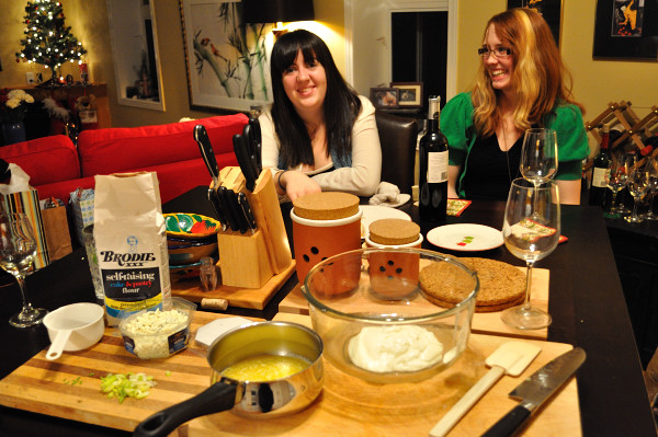 Dinner with the girls. The question remains: will these work with other cheeses or as a plain biscuit? It is a matter of science… and may lead to further experimentation. (mmmmwah ha ha…)