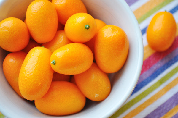 If you’re not familiar with the adorable kumquat, they’re the midget member of the citrus family. Originally from Asia, they have thick, sweet skins, a bitter, powerful centre and are about the size of a robin’s egg. The flavour is over-the-top orange with a sharp tang finish. If you’ve never tried one I suggest popping one straight in your mouth, just to familiarize yourself with the intensity of the fruit in its raw state.