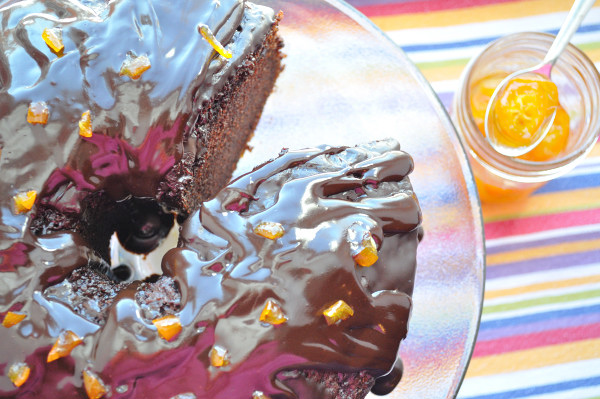 Originally, I planned a colourful citrus salsa, to take us down the road of a savoury-sweet endeavour, but then I had an overwhelming desire for the taste of orange and chocolate. Inspired by Terry’s Chocolate Orange, I whipped up a dark and delicious Chocolate Orange Chiffon Cake, moistened with kumquat syrup and topped with colourful bits of candied kumquat.