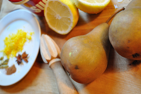 1. Place chopped pears and star anise into a large pot. Add water, just enough to cover the pear chunks, and the lemon juice. Bring to a boil, then reduce heat and simmer, until the pears are completely soft – about 30 to 40 minutes. Remove from stove top, and allow to cool, for 5 or 10 minutes, until the fruit is easier to handle. (Safety first.)