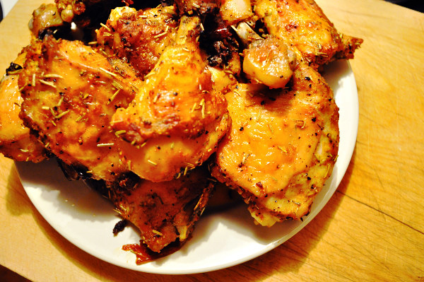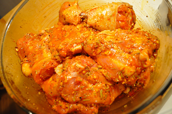 6 chicken thighs/legs, trimmed