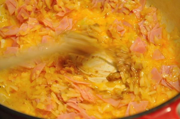 1/2 cup serrano ham (or chorizo sausage or Spanish salami), chopped