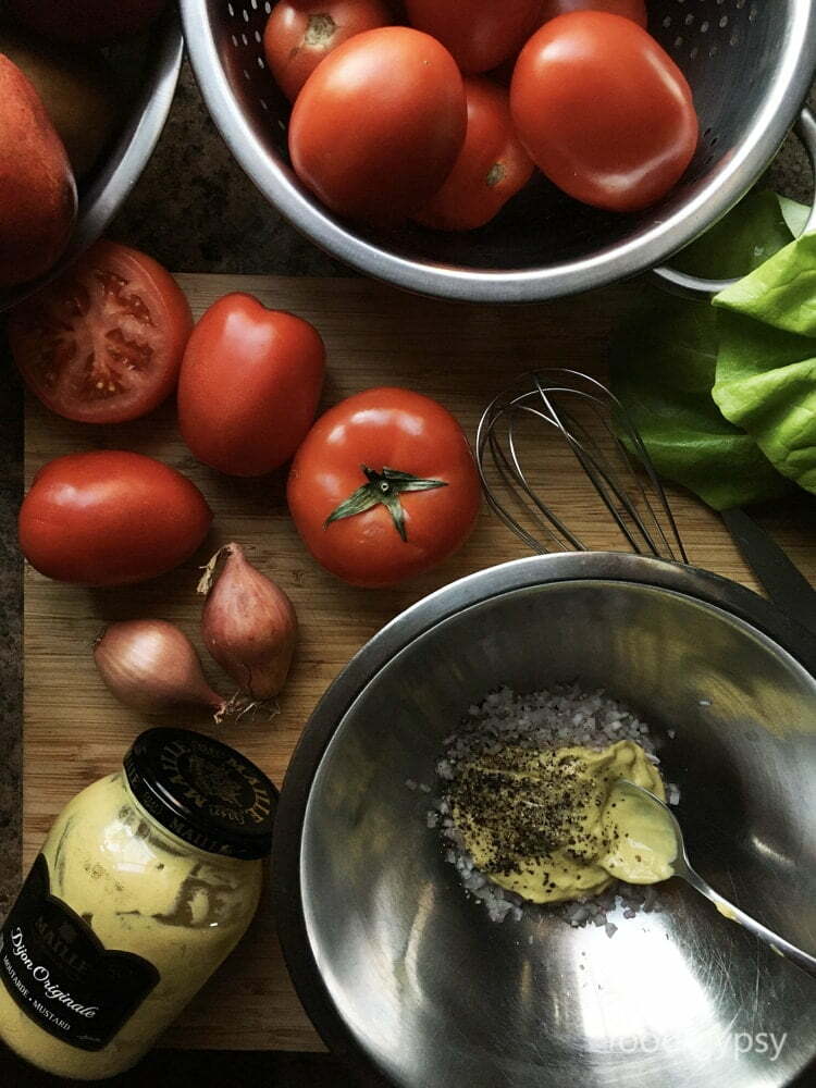 Mustard Vinaigrette is our number one salad dressing in the summer and year-round. I’ve featured many types of vinaigrette on Food Gypsy over the years depending on the salad and flavour direction. Citrus Vinaigrette, Honey Lime Vinaigrette, and Sesame Asian Vinaigrette are all terrific, but this is our constant stand-by.