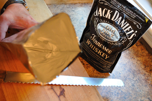 Our Chef B loves a blast of burboun, so when we saw the Jack Daniels’s Smoking Pellets we thought we’d give them a whirl on the grill. We found they smoke best with a touch of humidity. Tightly sealed in a tinfoil envelope, with just a sprinkle of water off the finger tips, load the smoke package to the back of the grill for best circulation and high heat.
