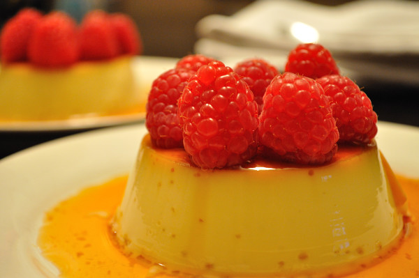Be sure to serve, very, very cold.  Top with fresh, dry raspberries or serve in it’s natural state for créme caramel classic simplicity.