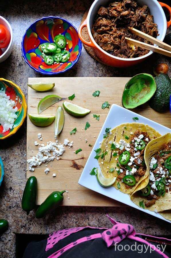 Try this crispy-on-the-outside, juicy-on-the-inside Yucatan Carnitas recipe on your next taco night. Slowcooker or cocotte friendly, the trick is the reverse sear that gives them their signature crispiness. I heart TACOS!