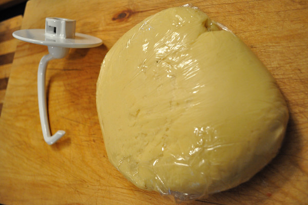 4)  Remove the dough from the bowl, wrap tightly in plastic wrap, and refrigerate for an hour or more.  If making dough ahead, you can safely rest it for up to 15 hours.