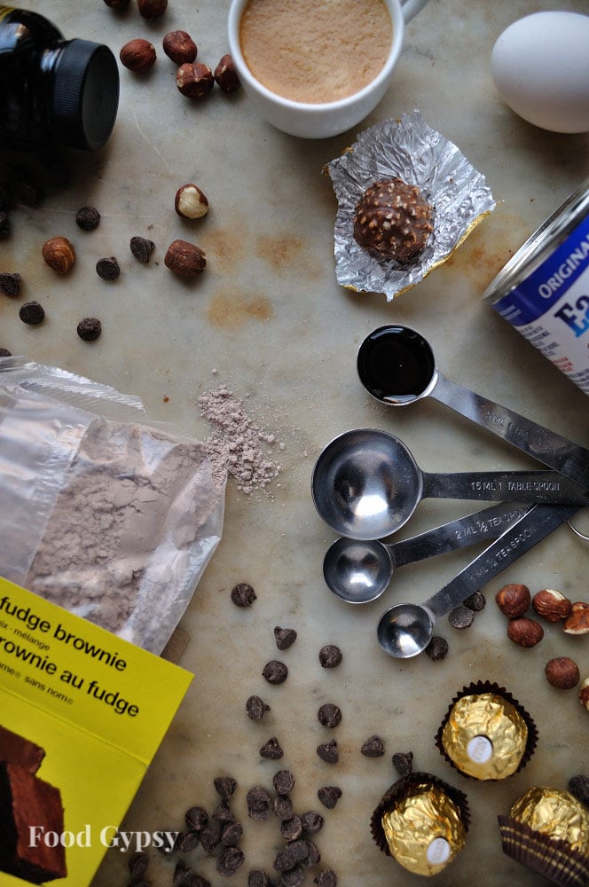 Ferrero Rocher Lazy Girl Brownies with Hazelnut Fudge (AKA: How To Make Amazing Brownies FROM A BOX)! Hey, there’s no shame in using a short-cut. Life can be busy and stressful this time of year, the last thing you need is baking stress.
