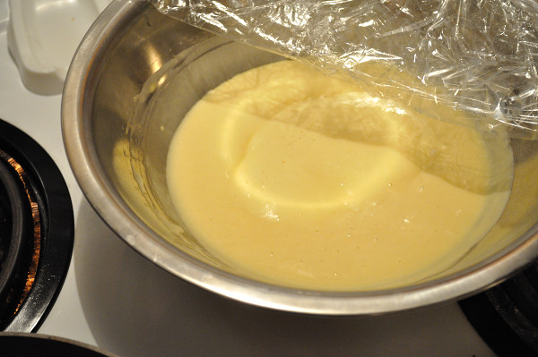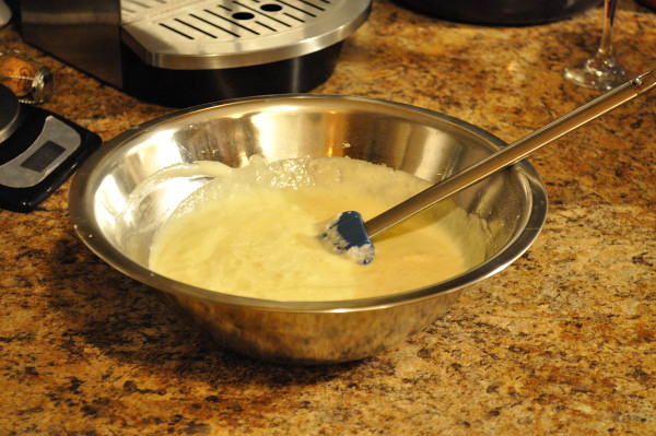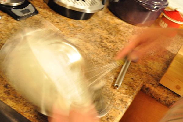 Blinis Batter Proofing - Food Gypsy Whisk egg whites to firm peaks - Food Gypsy Blinis batter, egg whites added - Food Gypsy