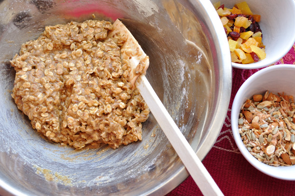 Gypsy Note: Let’s chat a minute about substitutions, shall we? This is a VERY flexible recipe. A great way to clear the pantry of all the little bits of things not used in other baking. Leftover nuts, seeds, dried fruit and/or grains, so use anything you want.