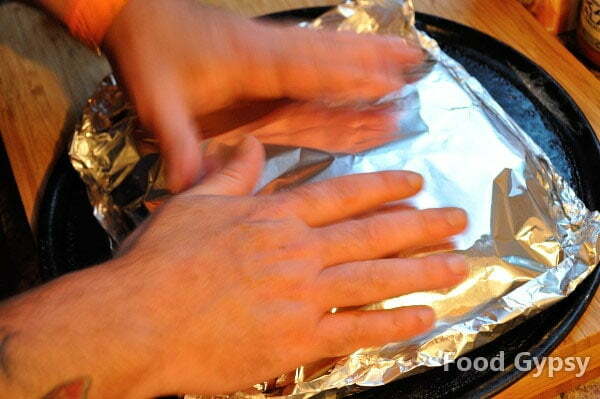 - Place foil pouch on baking tray and then into the 400°F (205°C) oven for 45 minutes, or more depending on the size of the chicken pieces you’re using. Always play safe and temp your chicken to ensure the internal temperature is 165°F (74°C), or over.