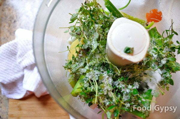 - Load green onions, garlic, ginger, salt, sugar, allspice, cinnamon stick, chilies and thyme into food processor. Pulse a few times to chop, add oil then run, scraping down the sides as needed, to make a coarse paste.