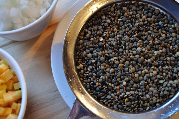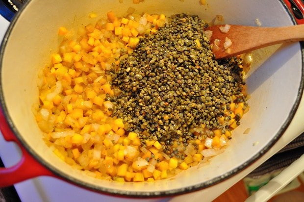In this recipe, I used French Green or Dupuy Lentils. They’re usually smaller than brown lentils, have a slightly peppery flavour and a green-speckled appearance and a firmer texture, making them perfect for soups, stews and casseroles. Dupuy lentils used to be hard to find, but now with so many vegan options and organic sections in big-box grocery stores, I often don’t need to make the trip to the local health food store, which stocks them in bulk.