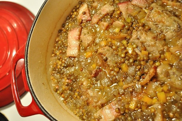 Leaning decidedly French, this power-packed Lentil Sausage & Bacon Casserole is a big pot full of love on a cold night! Pair with an unoaked, buttery Chardonnay and Dijon mustard for the full, French effect.