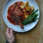 IF USING A SLOW COOKER:  Your method is infinitely simpler, though I often find with red meat, in particular, you may miss a layer of flavour.  Simply place all your sauce ingredients (except oil) in your slow cooker.  Add lamb shanks, ensuring they are mostly covered by liquid. Place lid on the slow cooker, and cook on medium heat for 6 – 8 hours. (Time will vary depending on your slow cooker.)  Remove lamb shanks.  Pour off red wine sauce into a separate pot.  Reduce sauce by up to one third, thicken with cornstarch as above. Return shanks to the sauce and serve.