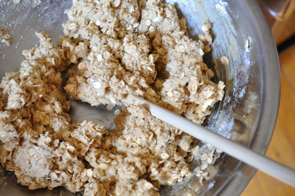 - In a large bowl, cream together softened butter & brown sugar until smooth. Add flour & dried spices and mix lightly, then add barley flakes and mix with wooden spoon or spatula until well blended, forming a moist, loose crumble.