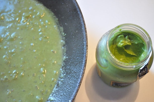 Gone are the days when bright yellow ballpark mustard fit the bill, I have now developed a taste for fine (read expensive) condiments which come in a variety of flavours. Traveling in France this past holiday season I beat a path of the flagship Maille Mustard store in the heart of Dijon where I quickly fell in love with their Black Truffle Mustard. (One jar was not enough, we now have it bootlegged in from France every three months to keep up with our appetite for all things truffled.) Break out of the same old mustard and try something from the broad range of flavours to be found at your local store: strong, grainy, white wine, honey and this green beauty; Fines Herbes (fine herbs in English).