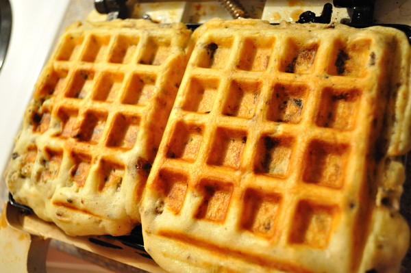 - Spoon chunky waffle-stuffing batter onto waffle iron, spread evenly on grill surface and cook until golden brown.