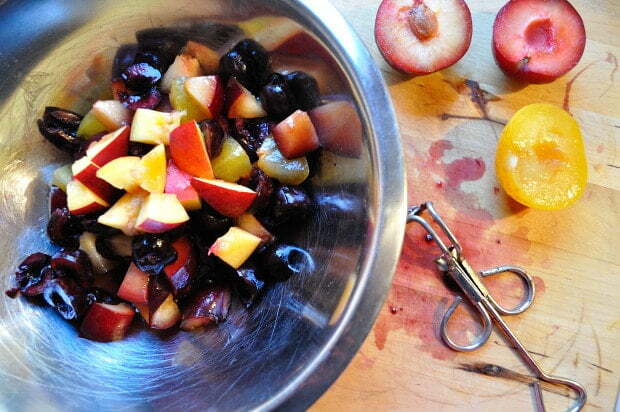 Chutneys are a cold weather standby at our house made with everything from the last of the summer fruits (like you see here), to the sugar coated figs at the back of the cupboard from last year’s feasting. Perfect with strong cheeses, cured meats or roasted poultry, they’re as simple as jam, but instead of preserving with sugar, we pickle with vinegar.