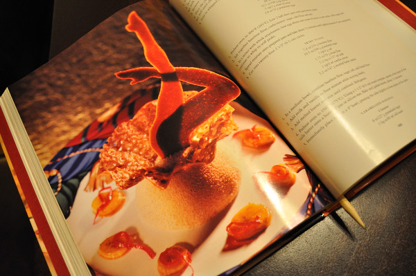 This sweet ending was inspired by a page in “Grand Finales, The Art of The Plated Dessert” that features this stunning photo, that inspired Chef B and we thought it might be fun to show you something a little more entertaining.   In the original version shown in this photos, the final height was almost a foot tall.  We downsized to create an intimate, feminine design that’s fun and sassy.