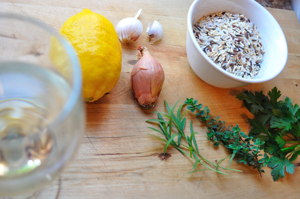 Sometimes I think it’s the simplest ingredients that make the best meals. A fresh piece of fish, a good rice blend and a couple of household staples and you have a beautiful meal in minutes. When I’m combining flavors, I often consider how to balance dominant tastes, like the acidity of lemon. In this meal we work the lemon against a grainy starch to lend power to capsicum and accent with salt and another layer of acidity to enhance a fatty, firm fish.