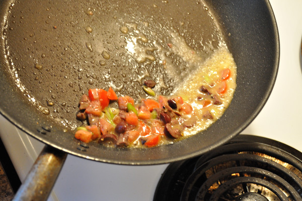 3) Drain excess oil if needed. Return pan to heat, add Olive Tomato Relish and toss in pan, to heat through and capture any loose seasoning and fish brownings on the bottom of the pan, about 2 – 3 minutes. Remove from heat.