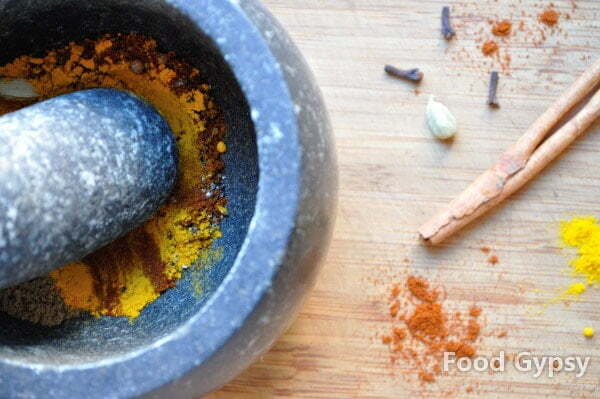 - Toast coriander seeds, cumin seeds, fennel seeds, fenugreek seeds black pepper ( if using peppercorns) cloves (if using whole cloves) and cardamom (if using pods) over high heat in a small, dry pan for about 4 minutes, until lightly browned and fragrant. Remove from heat to cool. Once cool combine toasted seeds with ground/dried spices and grind together into a coarse powder using a mortar and pestle or (clean) coffee/spice grinder. Remove and reserve.