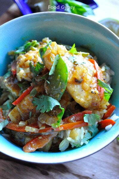 Serve Whitefish in Yellow Curry with sticky jasmine rice. Top with fresh chopped cilantro (and/or Thai basil) and a wedge of fresh lime and — voila, a meal to wow the (ocean) wise.