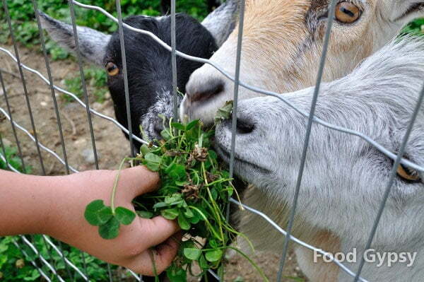 Set back from the road, with plenty of parking and a welcoming front facade, we found not just a charming little produce market but a marvelous family destination with a patio, and picnic area, a playground and a collection of farm animals including a troop of rambunctious goats to feed.  Waffles, smothered in fruit are made to order and colourful sorbets tempt behind glass.